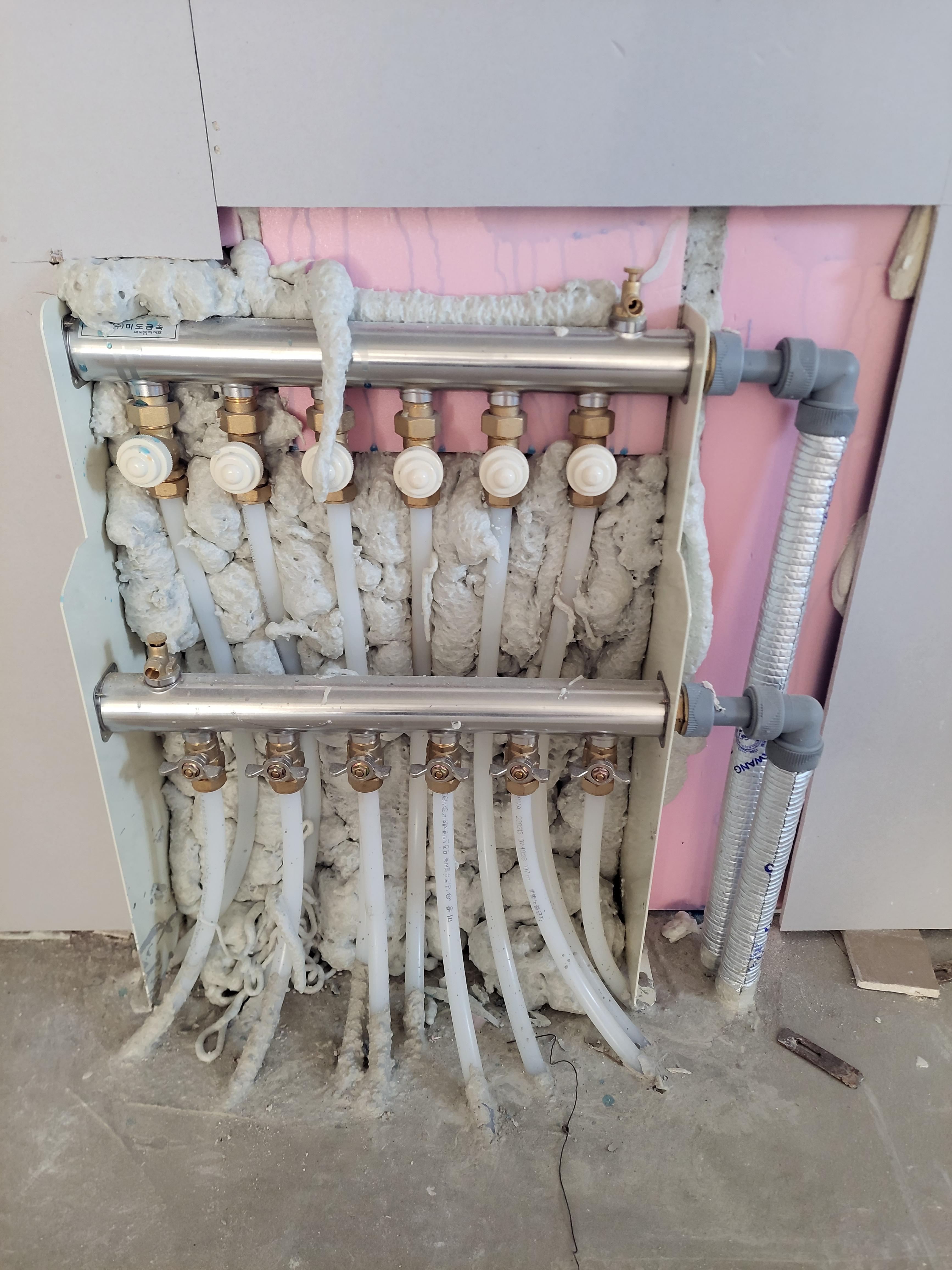 보일러 분배기부분까지 작업합니다.